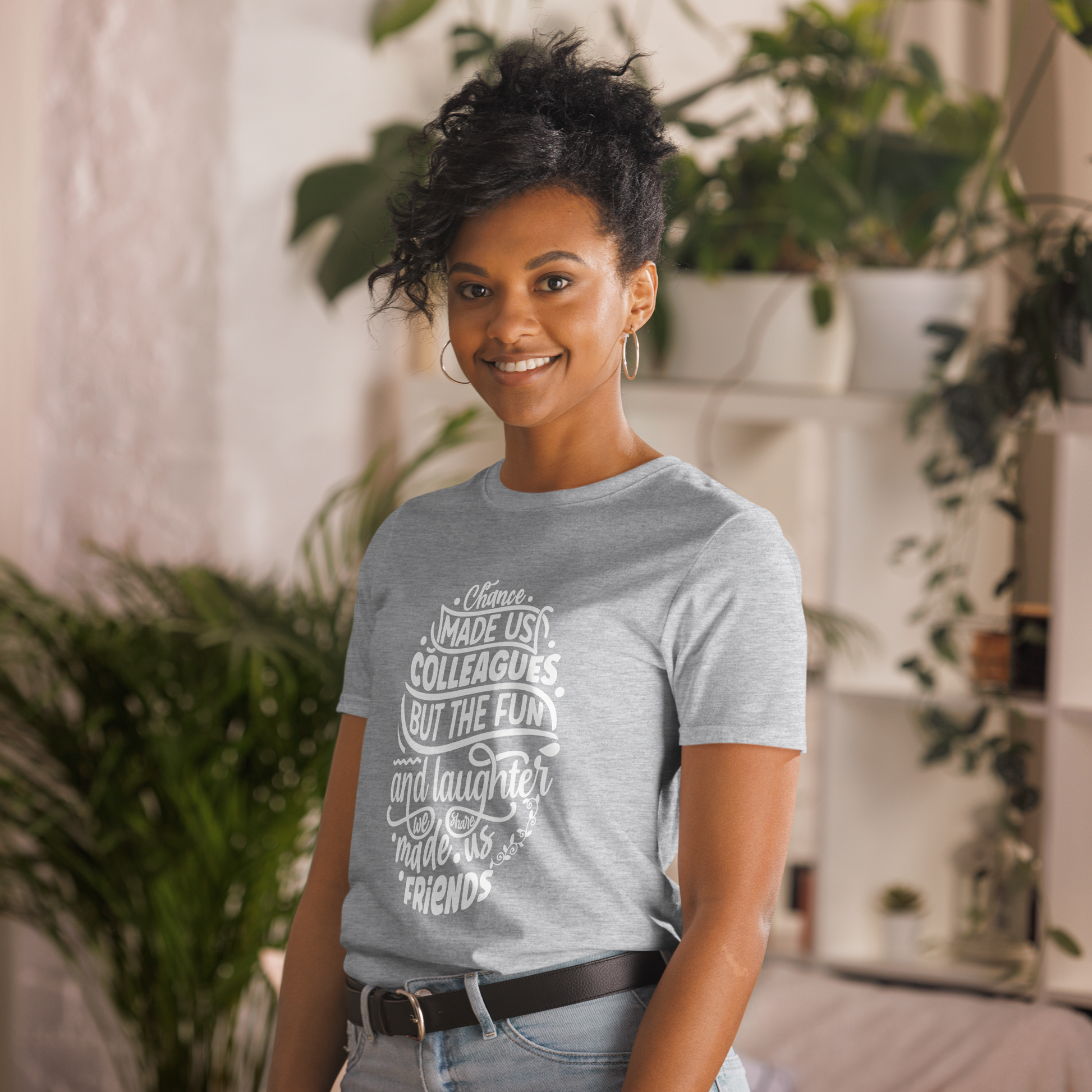 You've now found the staple t-shirt of your wardrobe. It's made of 100% ring-spun cotton and is soft and comfy. The double stitching on the neckline and sleeves add more durability to what is sure to be a favorite!